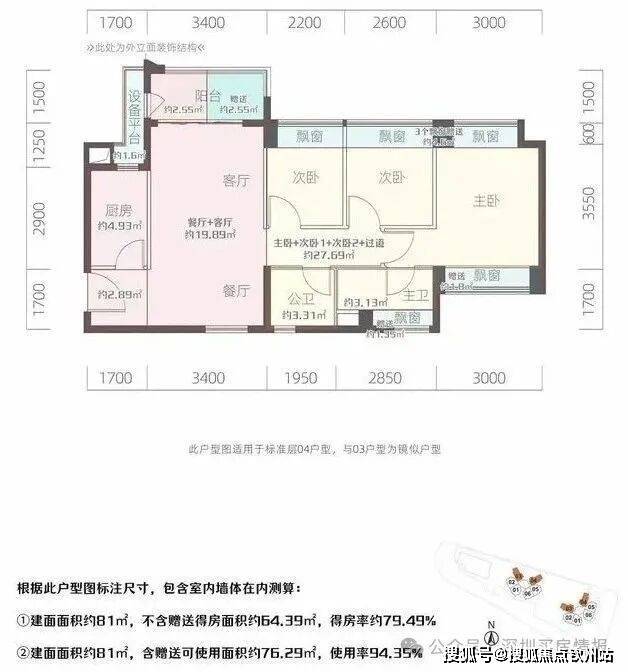 【推售产品】:建面约81/91㎡3房2厅2卫