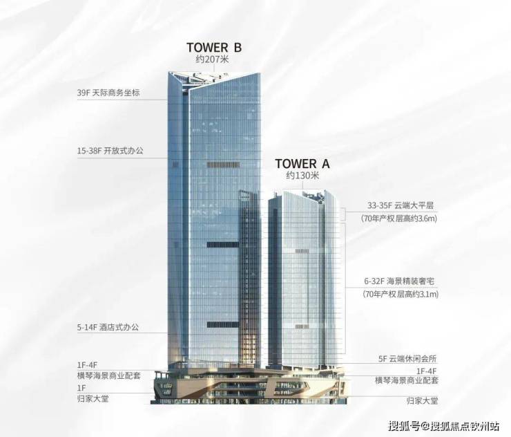 ·包含天际住宅、云端会客厅、甲级写字楼及商业等多元业态的地标综合体