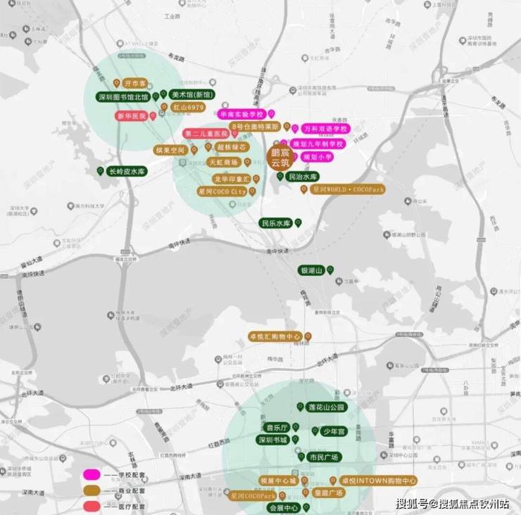 学校配套:项目自带1所12班制幼儿园,北侧规划有一所广东省一级学校建设标准的九年一贯制72班学校待建,据传是深实验学校进驻,根据龙华教育局2024年最新的学区划分,小初学区都是划分在华南实验学校。