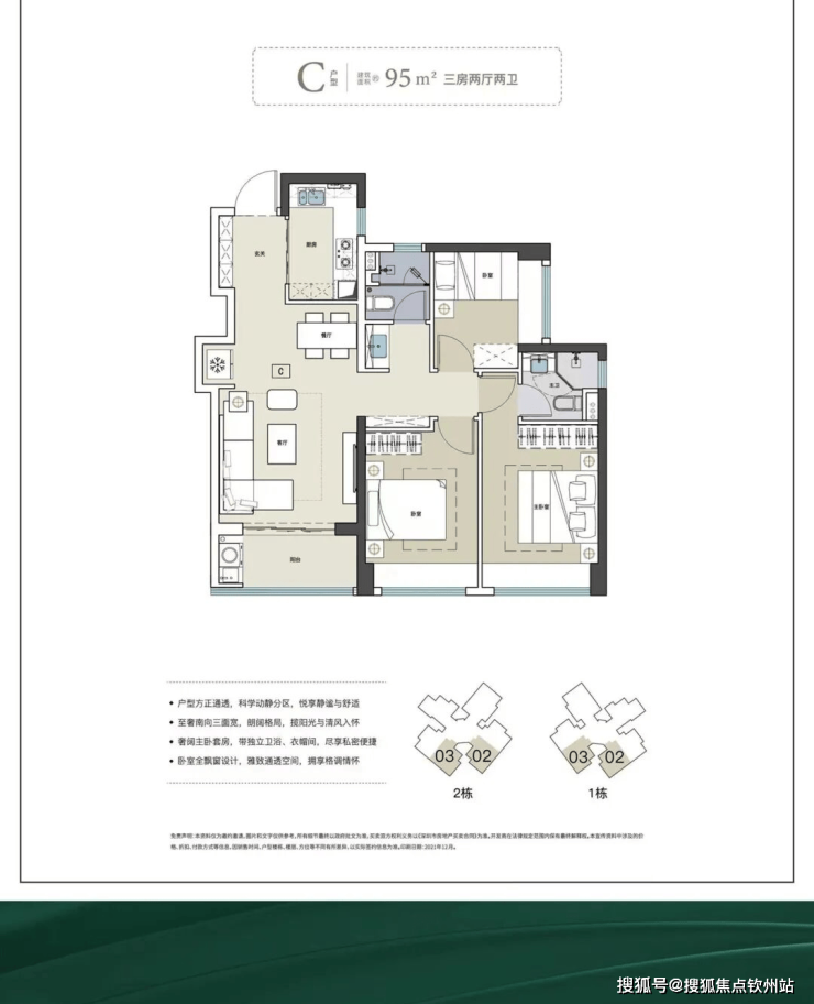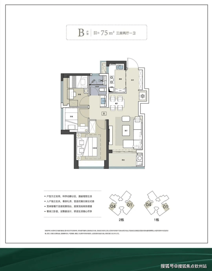 面积为75-120㎡三至四房,使用率超80%,高赠送,三开间朝南。