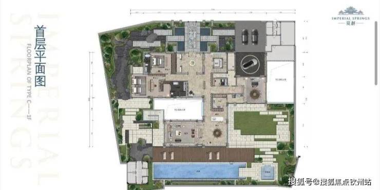 温泉别墅融合东方建筑精髓与西方设计理念,所有空间都无限接近自然,无墙化绿洲式景观设计,每户带8-10个庭院,长达 15-30米的面宽,一经推出便赢得了“史上最美庄园别墅”的美誉。