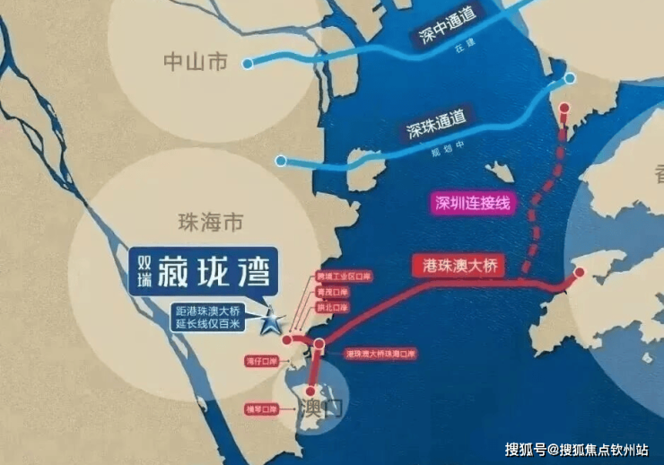 项目占位港珠澳大桥(延长线)黄金100米,港珠琴澳自在畅行,奢享湾区生活圈。