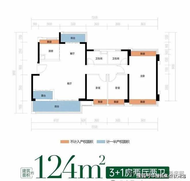 主卧双飘窗+次卧等面宽飘窗,全赠送高拓空间