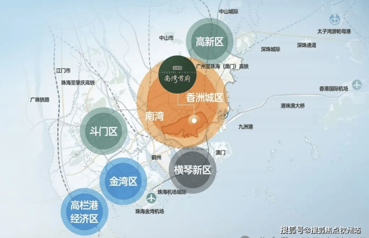 南湾位居珠海地理几何中心,东面一桥之隔即为香洲老城区,南面与横琴粤澳深度合作区、十字门中央商务区一山之隔;西面规划鹤州新中心;项目位置规划为生态科技城,珠海首个规划的产城融合示范新区。