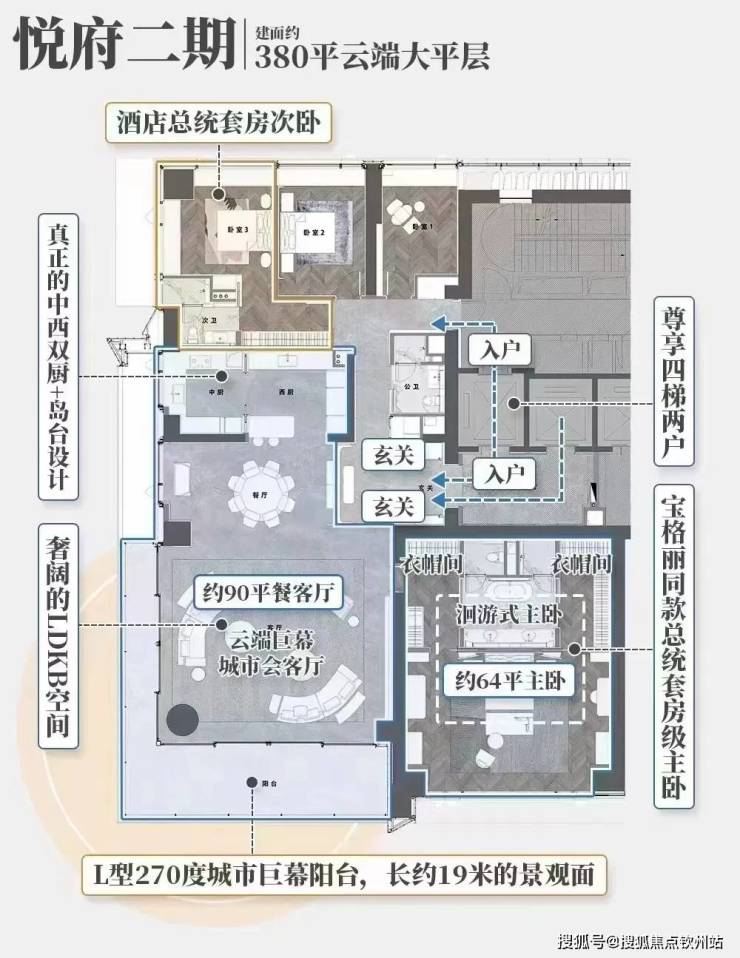 CBD悦府二期再次颠覆了东莞人对豪宅的想象。包含两种户型,建面约308㎡和380㎡。作为2000万级别的顶级豪宅,注定少数人才能拥有