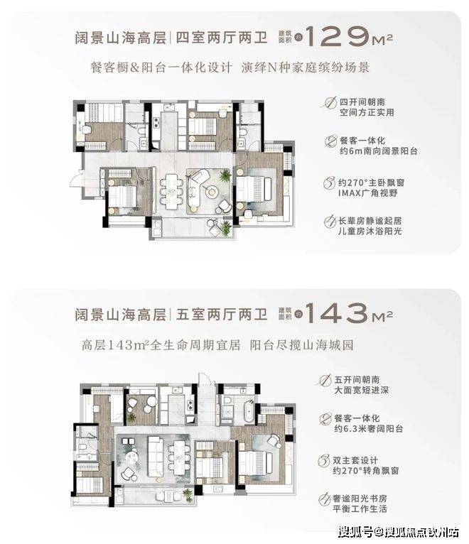 主卧室270°转角飘窗,景观视野开敞舒适;