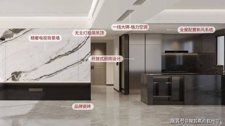 根据当代风格朝向与菁英客群的品味审美,打造高颜值居家空间。专属定制门牌号、石材/仿石纹大板地砖、客厅背景墙、无主灯极简吊顶、全景移门、通高门楣等42项颜值品质空间,精奢居感生活体验。