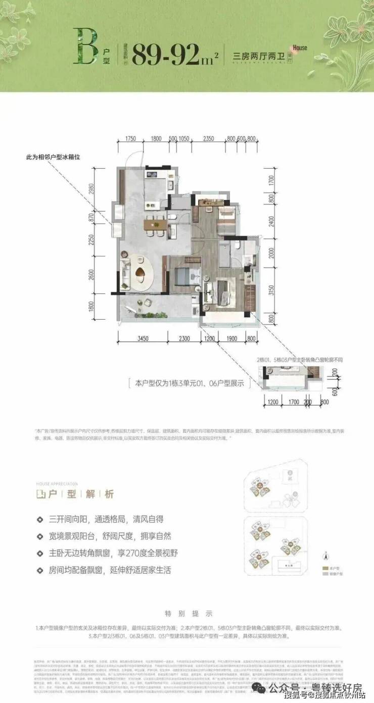 首次推首北地块1栋3单元,约80-92㎡ 3房,共195套,新规使用率高达96%-105%!