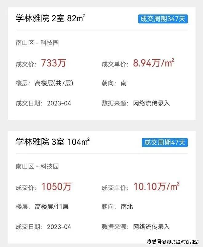 学林雅院的业主挂牌单价普遍在9万/平左右,历史成交单价在8.94-10.1万/平,22年高峰时期成交单价去到了11万/平。