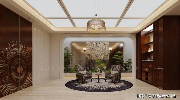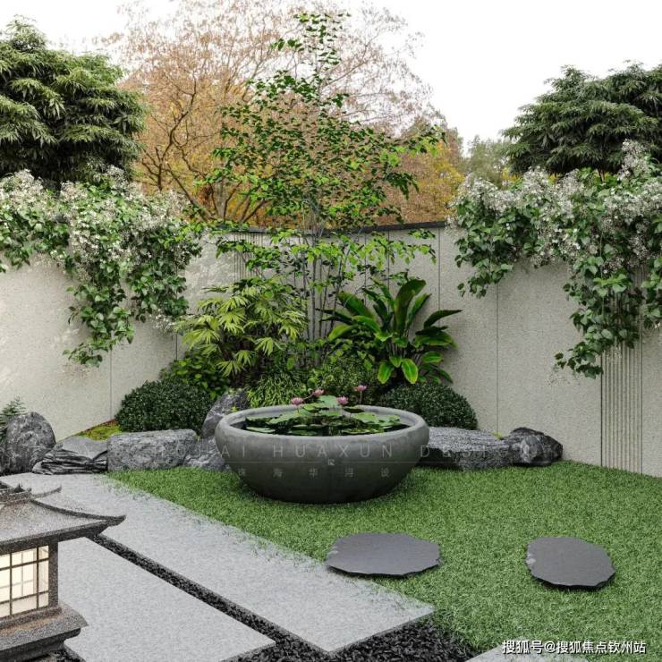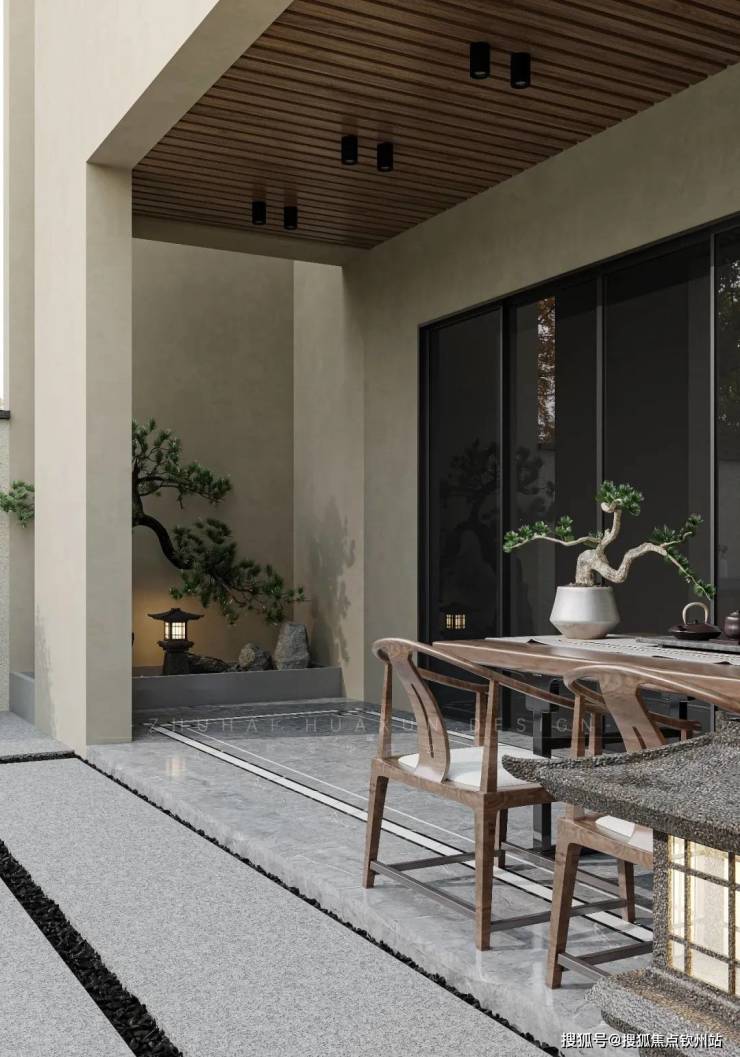 新中式园林设计,采用立体多层次种植群落,围合相对私密的空间,营造温馨的休憩居住空间、放松心灵的场所。