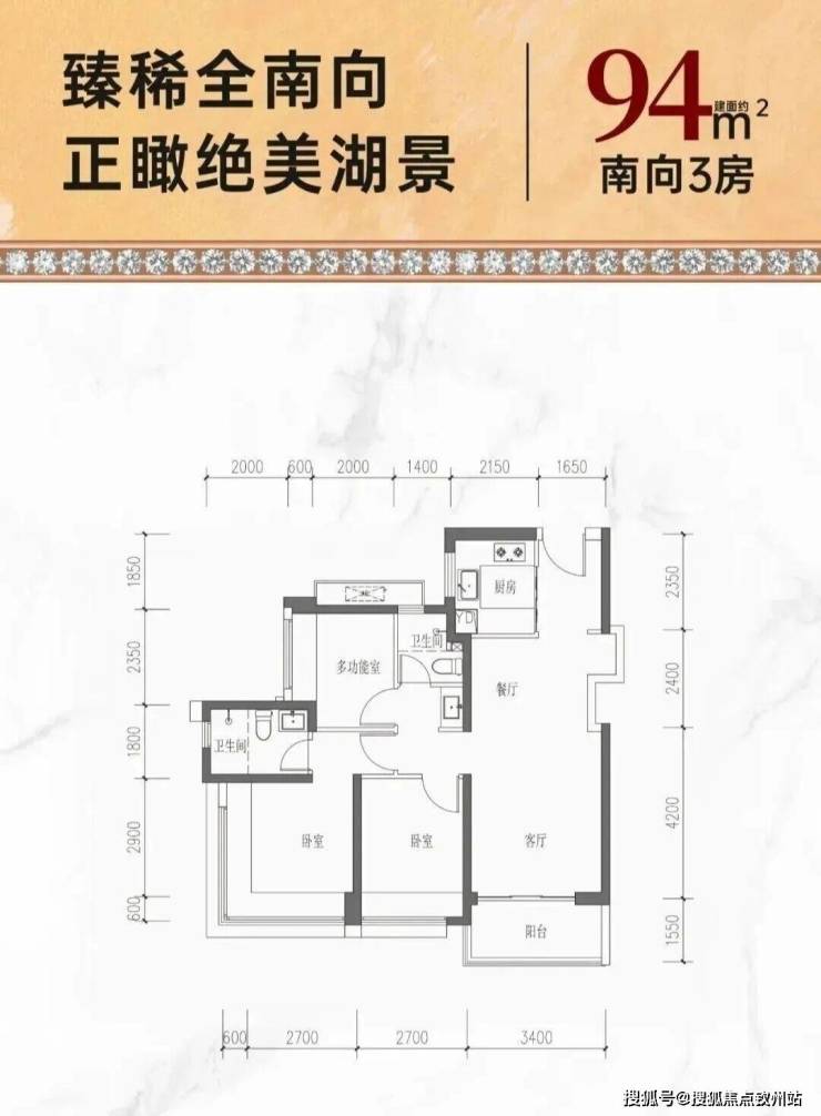 约94㎡经典3房,南向高性价