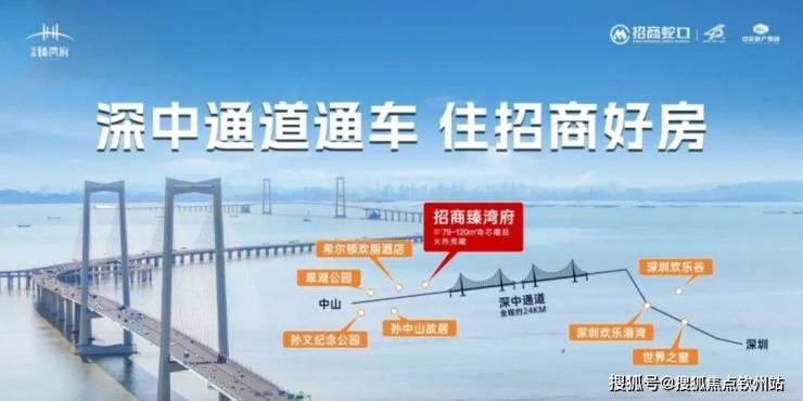 深中通道全长约24公里,是集“桥、岛、隧、水下枢纽互通”于一体的世界级跨海交通集群工程。一桥飞架,改写珠江口两岸融合发展格局,深中通道将深圳至中山约80分钟的车程缩短为约30分钟(信息来源:翠亨新区官网),加速深中同城,实现工作在浅海,居住在西岸,生活自由切换,实现两岸同频发展,共荣繁华。