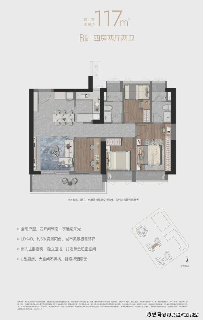 “南向全明四房LDK+B”设计,宽景阳台,拥揽四季
