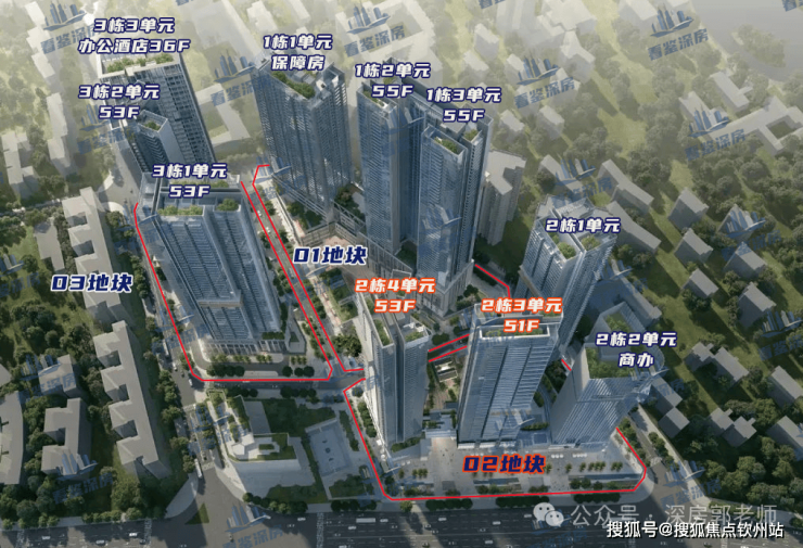 规划为3栋超高层塔楼住宅+幼儿园,1栋一、二单元193米55层,1栋三单元为保障房157米44层。