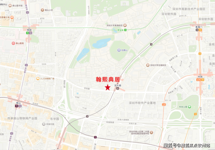 「翰熙典居」原为桂庙新村城市更新单元项目,位于南山区粤海街道白石路与学府路交叉口西北侧,东临白石路,西近南海大道,南临学府路,北面与深圳大学毗邻。周边集聚了腾讯滨海大厦、软件产业基地等写字楼,地理位置优越。