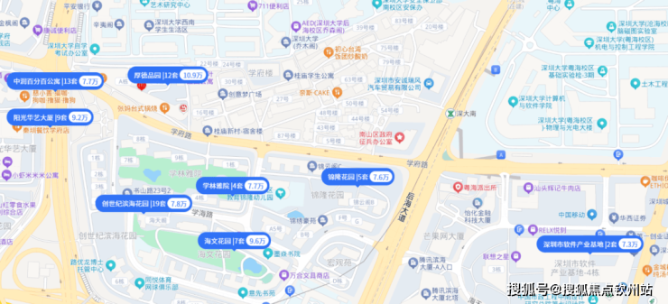 地处科技园核心和深大校园,临近的仅有文心公园、科技公园,稍远一点是粤海街道文体中心、深圳湾公园、人才公园等。