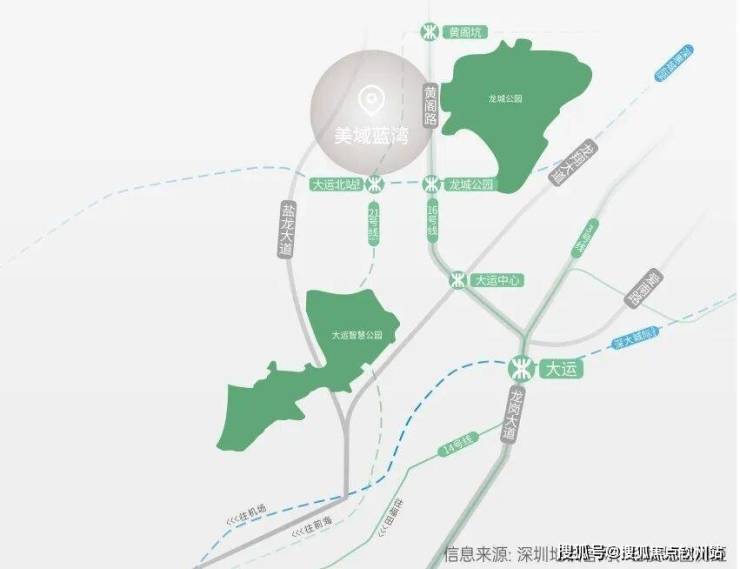 地铁:直线距离16号线龙城公园站约800m,两站直达大运枢纽站,换乘3/14号线和深大城际(建设中);直线距离21号线大运北站(规划中)约600m;快速连接全城。