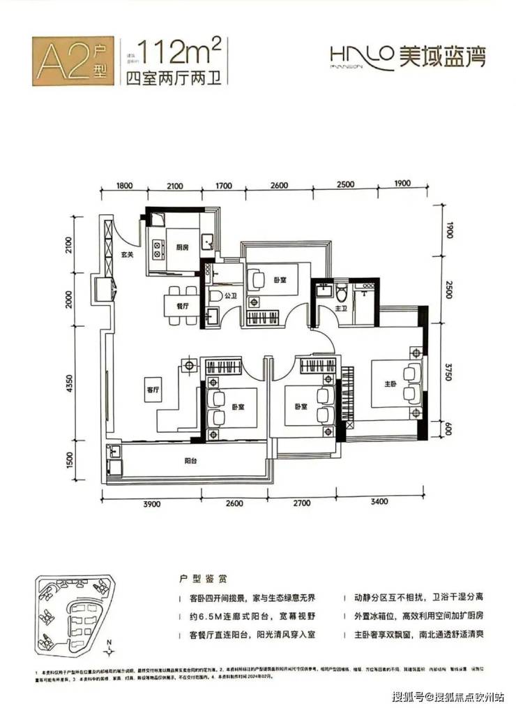 (2)112平方米:南北双阳台设计,主卧带270度转角飘窗。