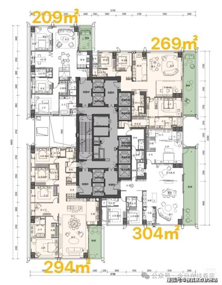 主力户型:主打200㎡以上大平层,具体面积段为200-270㎡、300㎡、400㎡、500㎡、700㎡、1100㎡,满足高净值客群对大空间的需求。
