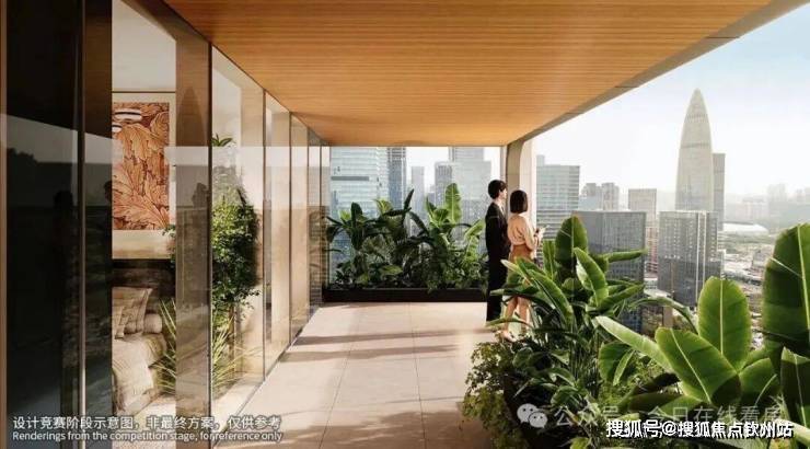 自然融合:效果图显示阳台设计明显,绿植覆盖丰富,强调自然与居住空间的融合,部分超高层观景面采用落地玻璃,无需阳台即可观赏海景。