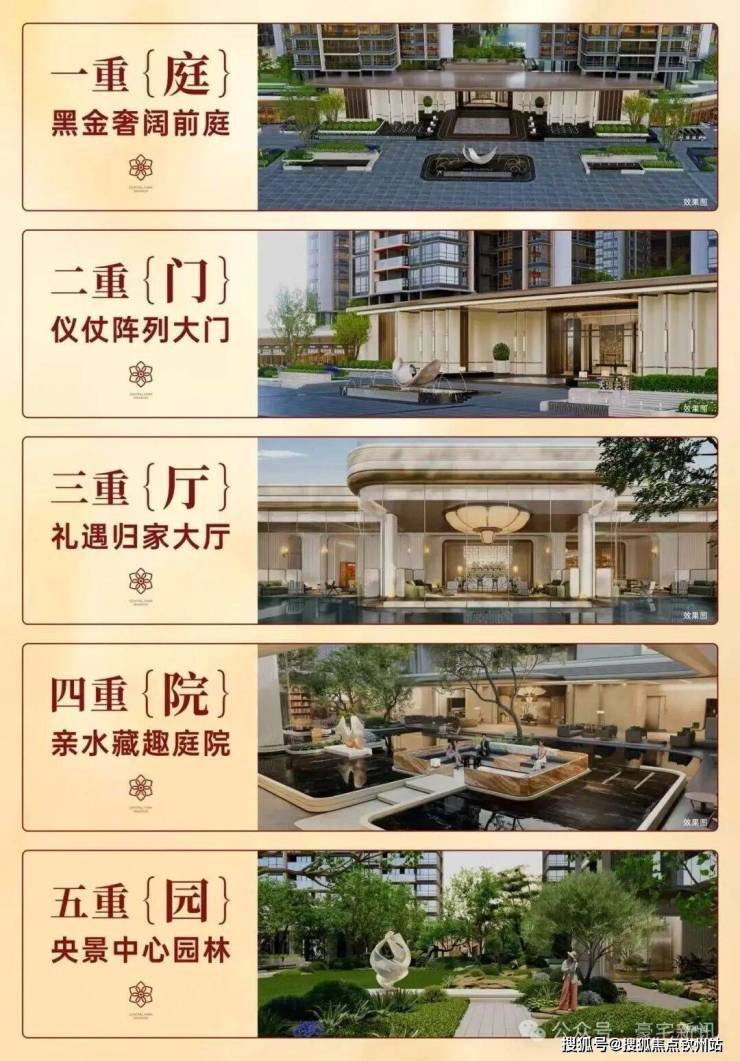•景观双轴,十大主题庭院:礼序前庭、琉光下沉式庭院、游泳池、社区会客厅、轻氧健身、亲子乐园、社区慢跑场等十大主题景观庭院。