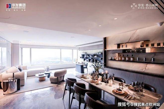 客餐厅一体化,形成宴会级无界方厅,尽显奢华,能轻松胜任家庭聚会、商务洽谈等场景。