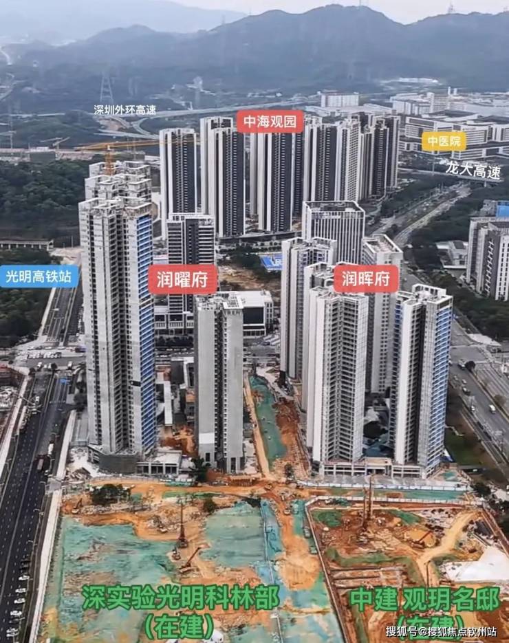 旁边就是润曜府、润晖府,东侧是待建的深实验光明科林部,不过观玥名邸靠着观光路,离13号线的德雅路站更近,仅300米左右!