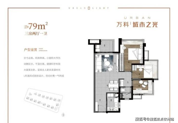 中山·万科地产城市之光項目項目的户型图设计上,秉持了万科地产城市之光系列产品创作的优势和特征,不但进深宽阔,向南透彻,南北方自然通风之外也确保了光照优异;每个功用间分间显著,多功能性更为实用性的同时还能提升房屋的整个外观。让每一个房型都真真正正对得起“城市之光”的称号。