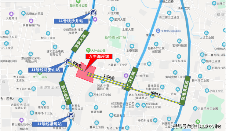 万丰海岸城,这座矗立于宝安“西部城市中心”的超级城市综合体,以其卓越的地理位置和完善的配套设施,自2021年首批产品入市以来,便持续引领着市场的热潮,成为深圳西部的一颗璀璨明珠。项目紧邻地铁11号线马安山站东侧约300米(地图测量数据仅供参考),不仅占据了宝安区重大设施落实的核心区域,更是新桥新中心打造的焦点所在。