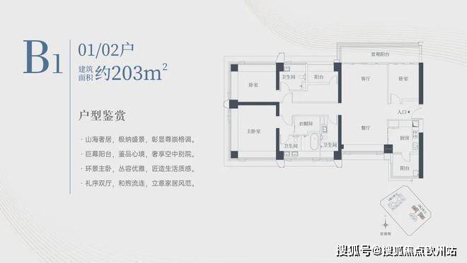 匠筑建面约124-203㎡全生命周期天幕户型,360°采光通风,270°环景主卧,山海日常推窗可得。背山面海,藏风聚气,家宅福泽之地。