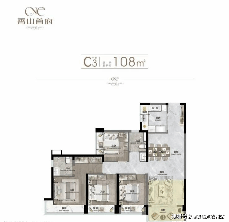 ▫建面约108㎡四房两厅两卫