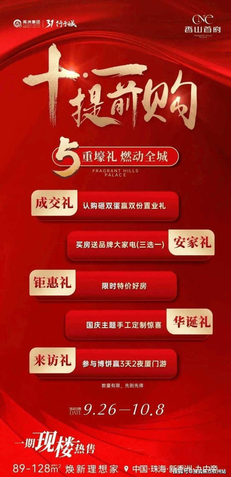 禹洲・香山首府:新香洲现房在售建面约89-128㎡,9.26-10.8推5重好礼,到访博饼赢厦门3天2夜游