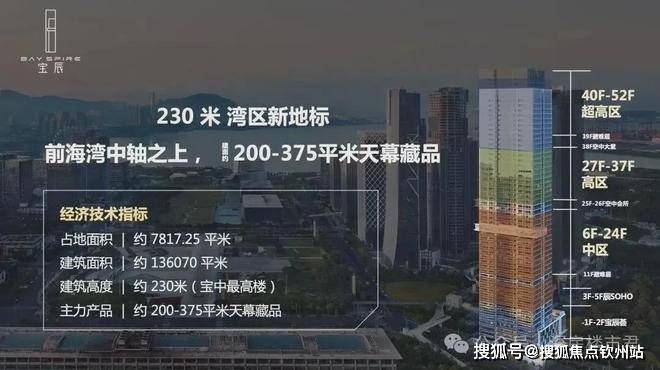 项目建筑高度约230米,是前海湾摩天建筑群中又一道独特风景线。项目建成后,