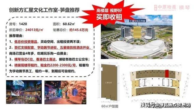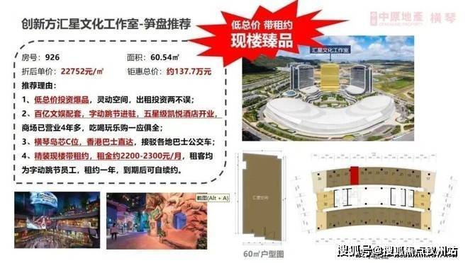 横琴粤澳深度合作区率先落地的文旅商业综合体全现楼产品,即买即入驻即办证,所见即所得,标准安心兑现。优于其他产品的50年产权,层高约3.9m,开放式格局灵动百变。