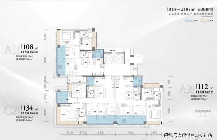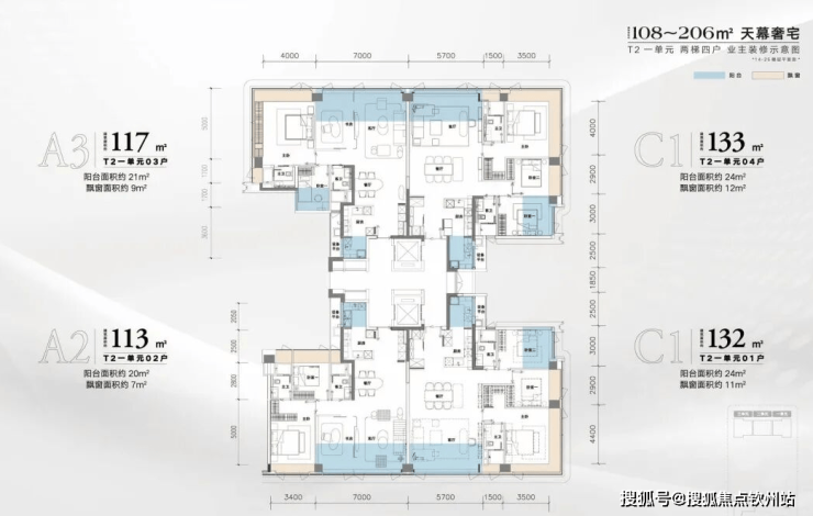 【北塔T1】约195-206㎡无界山景四房 城央奢享家