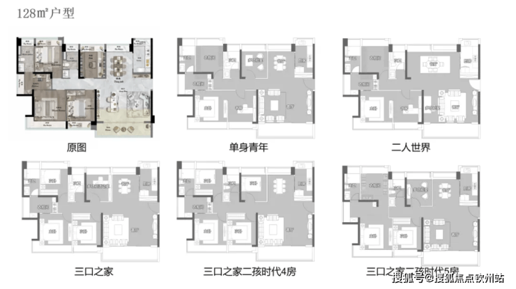 在售一期 1/2/3#,主力户型为 89-128㎡三至四房,两梯六户设计。89㎡三房两厅一卫总价约 276-290 万,97㎡三房两厅两卫总价约 295-310 万,108㎡四房两厅两卫总价约 335-350 万,128㎡四房两厅两卫总价约 410-430 万,整体带装修均价 31000 元 /㎡。户型多为南北对流,部分户型带 9 个全赠送飘窗,128㎡户型客厅开间达 5.8 米。