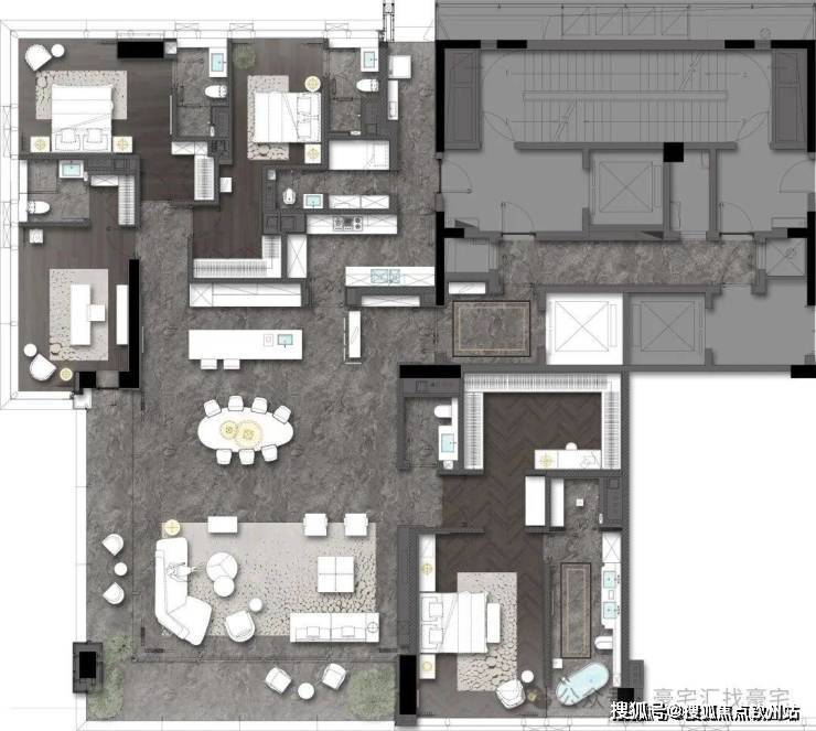 💎 3梯两户约380㎡大平层,专梯入户,镜像对称户型