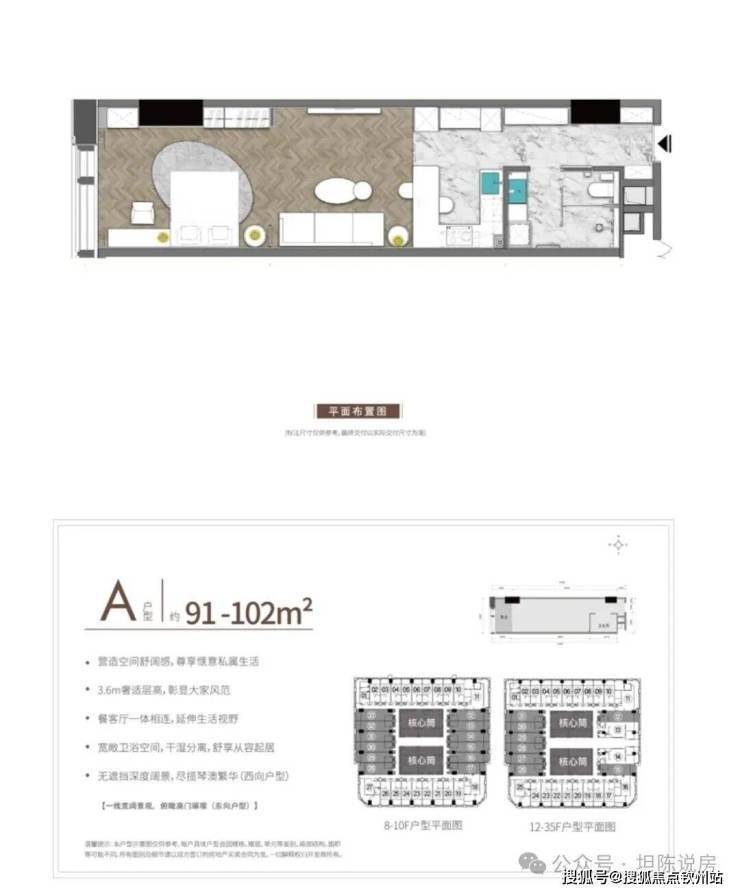 A户型——建面约91-102㎡,整面落地窗设计,澳门繁华景观+海景,推窗即享;宽适卫浴与动静分区,兼具隐私与从容。