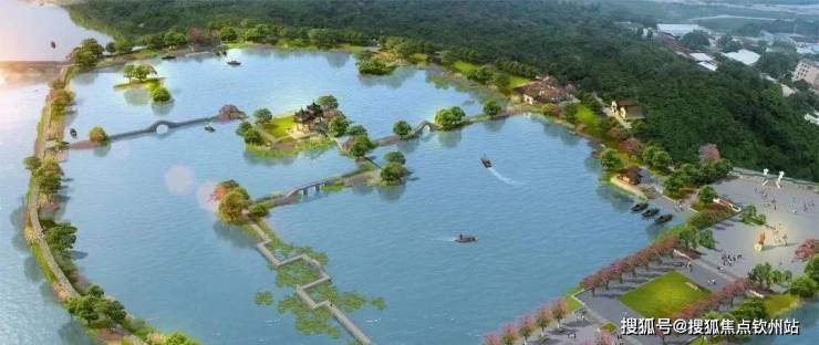 位于后环片区的唐家中山公园总规划占地约60万㎡,以湖心双亭为中心,打造“湖心一岛,玉带凌波”,营造“水色天光、咫尺岭南”的园林风情。
