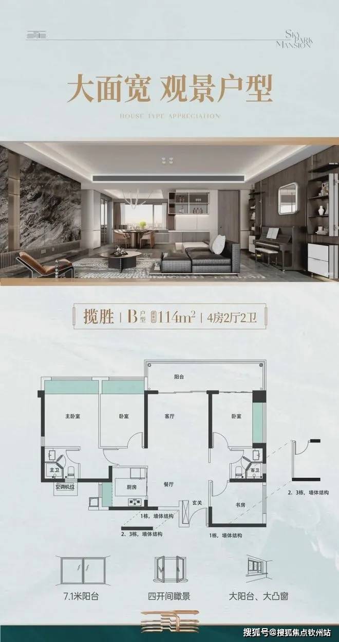 振业天境云庭建筑新规设计、超高得房率;113㎡南北透4房,114㎡双龙抱珠4房。