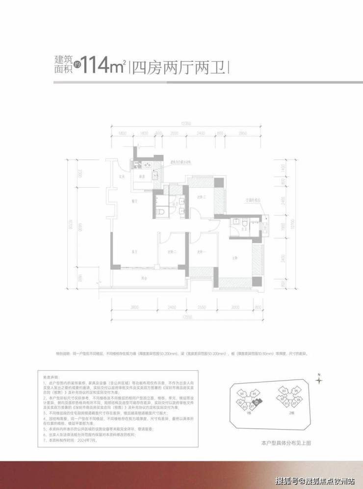 (2)114㎡四房两厅两卫,总价515万—525万,高层40楼以上可选;