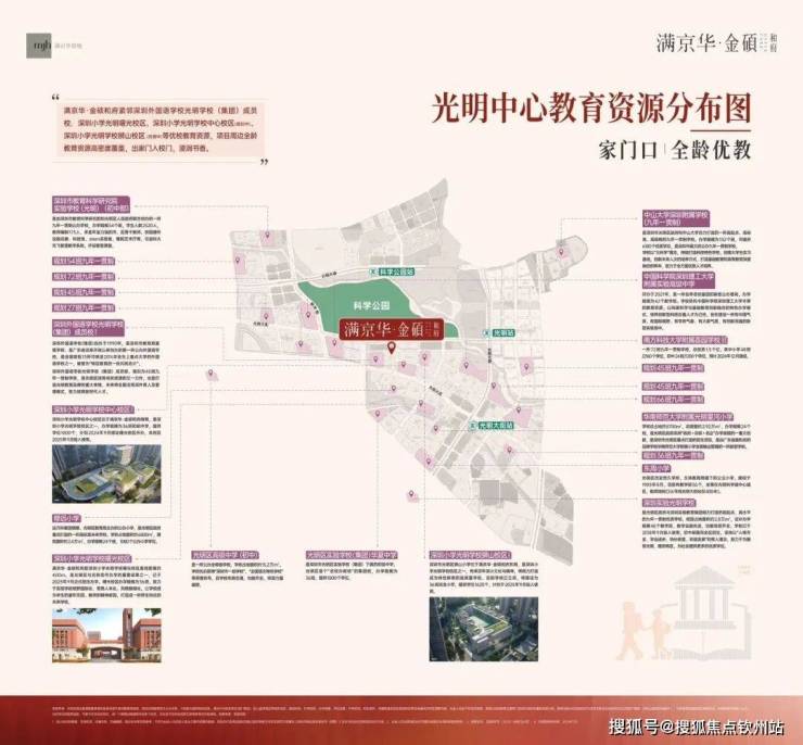 满京华·金硕项目直面占地约208万㎡的科学公园(在建中),近享深圳国际美术馆(在建中)、深圳科技馆新馆(在建中)、科学城体育中心(在建中)、光明文化艺术中心等市级文体配套;还坐拥狮山公园、约9.4万㎡的东周文…