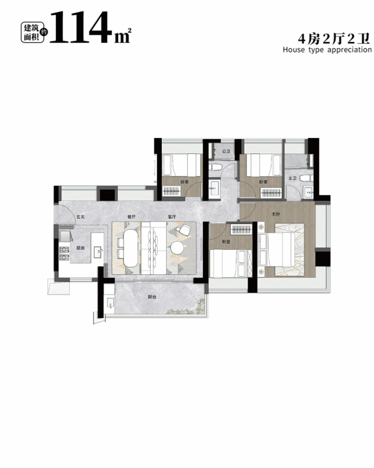 (4)114平4房2卫,折后总价600-645万;