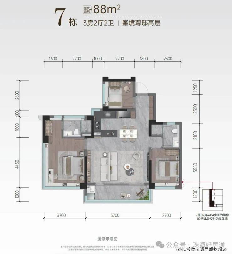 ◎7栋04房【约88㎡三房两卫】(02房与04房互为镜像)