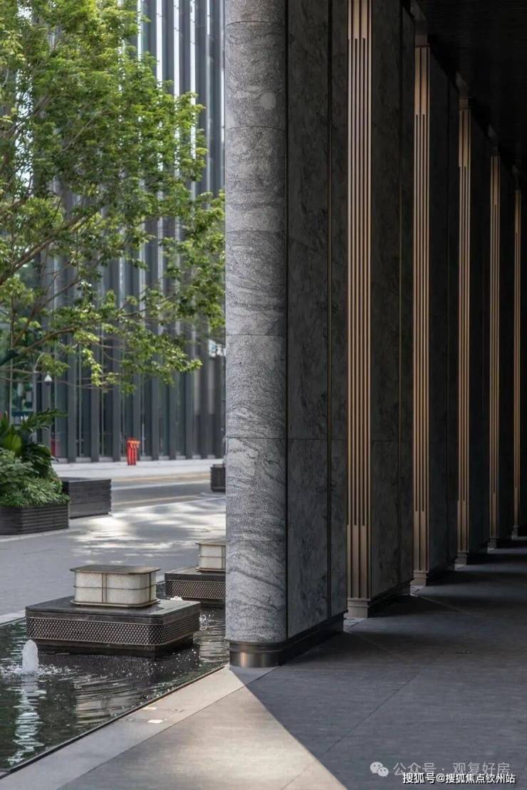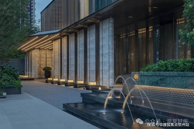 酒店式社区大堂:朝向广场,入口前场、门廊、大堂、内庭院、单元大堂组成的归家动线,配合建筑、景观、室内、标识、灯光一体化设计,汲取糅合后的南洋文化元素细节,把酒店式归家仪式感拉满,彰显非凡气度。