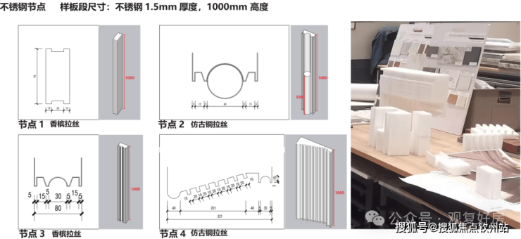 落地品质保证来源于细节控制及材料选择,从立面方案确定到最终完成幕墙定稿,设计花了大量时间做材质比选及细节推敲工作,也探索了一些高效实用的工作方式如:工程样板、1:1实体泡沫模型及1:1KT板打印效果比较构件尺度等等,为项目快速定样提供了有力支撑。