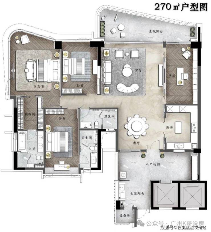 【A户型】王牌户型 270㎡环幕江景四房,约9米超大邮轮式阳台,一线望江无遮挡,专梯专户,墅级空中双花园,约28㎡超大私家庭院,多功能空间,约42㎡超大主卧空间,270°环幕江景,阔绰双主套房设计。