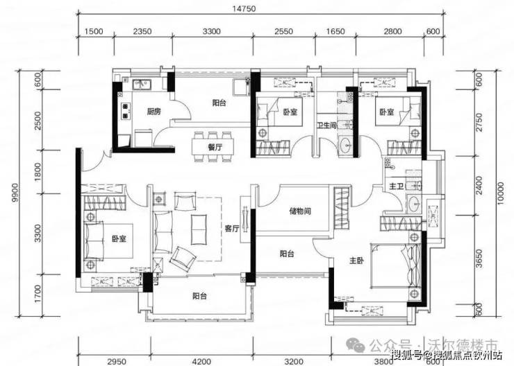 89㎡四房两厅两卫,同等面积多一间房,二孩家庭也能三代同堂。