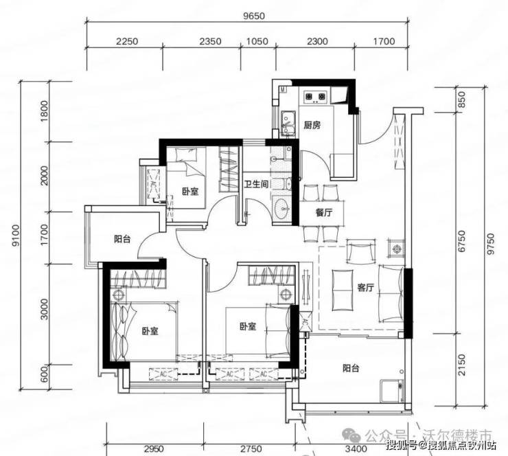 ✅ G03户型:约81㎡ 三房两厅两卫: