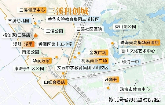自带约 8 万㎡商业综合体(含 8600㎡邻里中心),已签约星巴克等品牌,预计 2026 年开业,下楼即可满足吃喝玩乐购需求。周边 1.5 公里内有山姆会员店、印象城等大型商业,生活便利。同时,项目紧邻苏曼殊故居和简氏大宗祠,人文底蕴深厚,下楼即达 2 万㎡三溪公园,背靠 4.5 万亩凤凰山,10 分钟车程可达香山湖公园,生态环境优越。